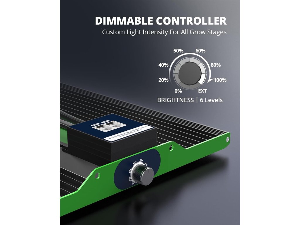 Stmívatelný ovladač: 0 % / 20 % / 40 % / 60 % / 80 % / 100 % / EXT